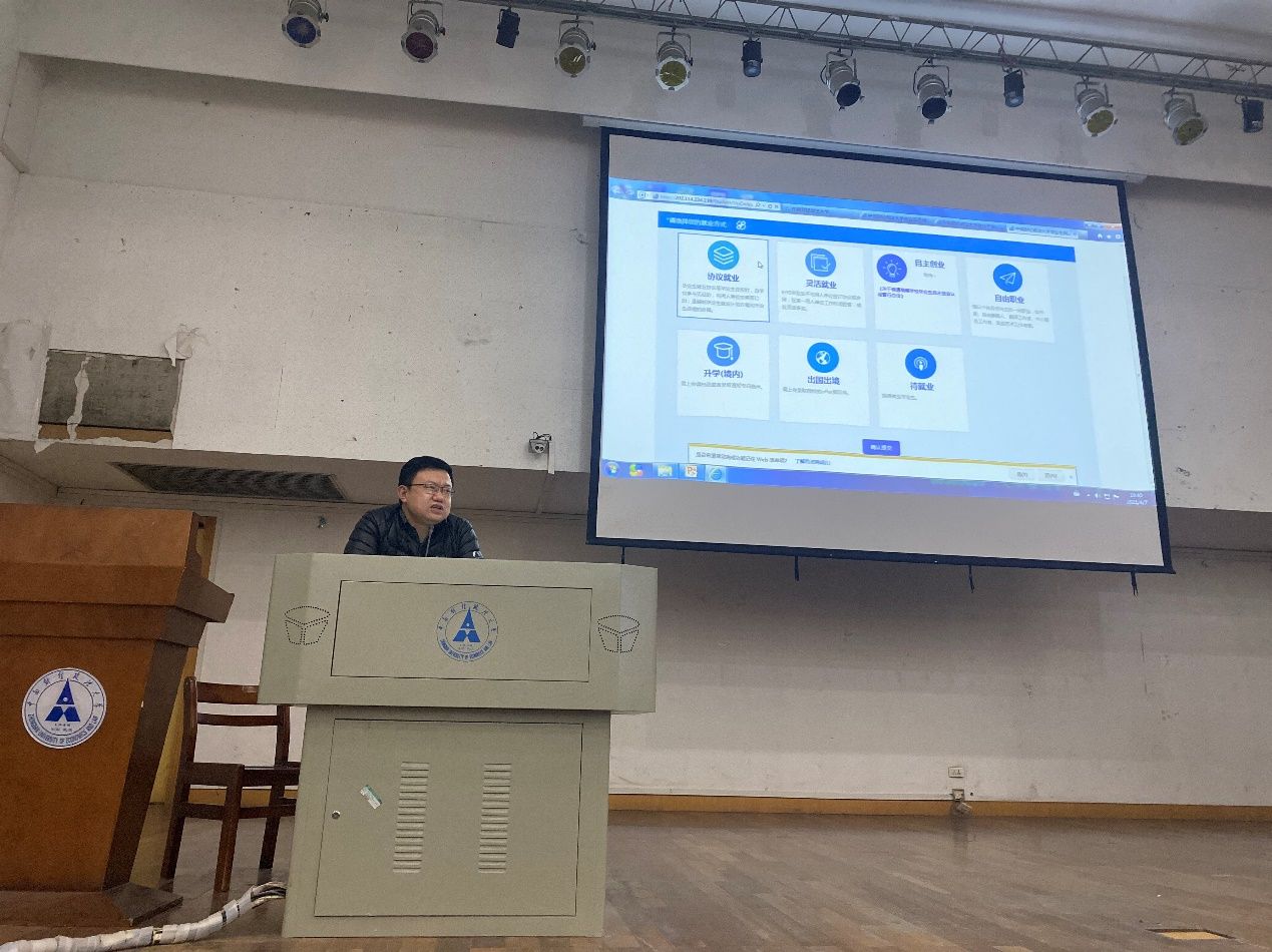 最后,梁斐老师为毕业生们进行了网签系统培训,介绍了不同类型毕业去向的网签、报到证、档案、户口等就业手续办理流程,并对系统中协议就业、灵活就业、自主创业、国内外升学等板块的操作进行了全面详尽地演示。
